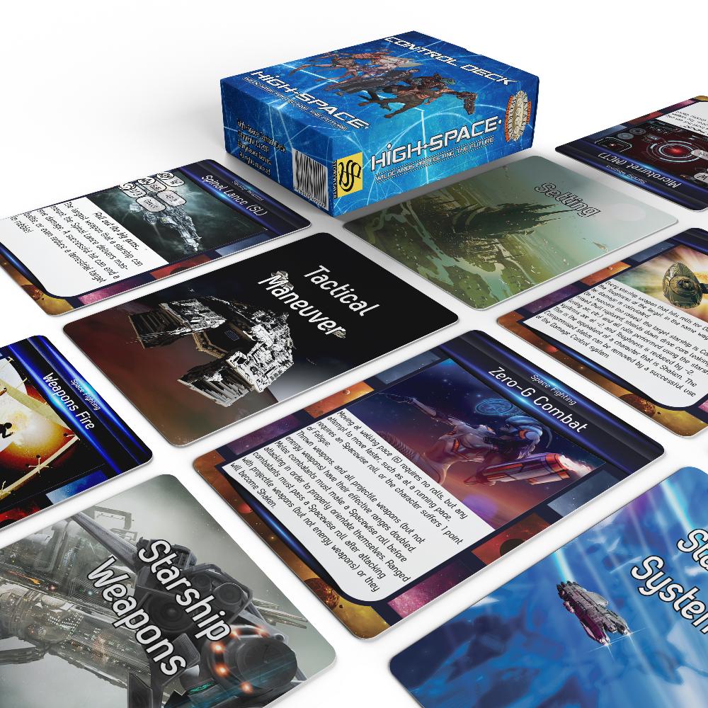 Keep your games running at light-speed with the High-Space Control Deck. All the essential rules for starships, space combat and essential setting rules on 45 quick-reference cards.